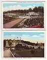 In 1888 an investment group called Sinclair and Rhodes, which included Lee Wiley Sinclair from Salem, Indiana, and E. B. Rhodes, acquired the West Baden hotel and 667 acres (270 hectares) of land for $23,000.[17] Although the hotel was destroyed by fire in 1891, it was rebuilt, and over the next several years Sinclair bought his partners' interest in the hotel and became its sole owner.[13] Sinclair turned the facility into an elaborate resort. Advertised as the Carlsbad of America,[18] the cosmopolitan resort included a casino, an opera house, and a covered, two-deck, one-third-mile oval bicycle and pony track. A lighted baseball diamond in the center of the track was used as the spring training grounds for several major league teams including the Cincinnati Reds, Chicago Cubs, and Pittsburgh Pirates, among others.[19]