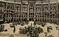 The new hotel opened on September 15, 1902, to rave reviews. Its formal dedication took place on April 16, 1903, with Indiana governor Winfield T. Durbin and U.S. Senator Charles W. Fairbanks delivering speeches at the event.[27] Advertisements called it the Eighth Wonder of the World.[28] Hotel amenities included a gambling casino and live theater performance every night, as well as opera, concerts, movies, bowling, and billiards. Palm trees grew in the huge atrium, where birds had free range and guests relaxed on overstuffed furniture grouped in clusters under the 200-foot (61 m) dome. The massive fireplace in the atrium could accommodate logs as long as 14 feet (4.3 m). Outdoors, guests had their choice of a natatorium, two golf courses, horseback riding, baseball, several hiking trails, or bicycling on a covered, double-decked oval track. (At 1,760 feet (540 m), the track was the largest in the country.) To cater to their well-heeled clientele, the hotel's facilities also included a bank and a stock brokerage. A trolley transported guests from the hotel's front door to nearby French Lick.
