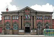 West Bromwich Town Hall, situated in the centre of the High Street, is a Grade II listed building. It was built between 1874 and 1875 in brick and stone to an Italian Gothic design, and its interior reflects the Victorian interest in Gothic and Medieval architecture. Its Grand Organ, built in 1862, is considered to be of historic importance for its musical and technical qualities.[25][26]