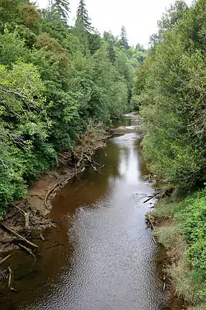 The West Fork Millicoma River is a tributary, about 34 miles (55 km) long, of the Millicoma River in the U.S. state of Oregon. Rising in northeastern Coos County near the Douglas County line, it flows generally southwest through the Elliott State Forest of the Southern Oregon Coast Range to the community of Allegany. There it joins the East Fork Millicoma River to form the Millicoma. In turn, the Millicoma, which is only about 9 miles (14 km) long, joins the South Fork Coos River to form the Coos River. The Coos River, itself only about 5 miles (8 km) long, empties into the eastern end of Coos Bay, which connects to the Pacific Ocean.[4]