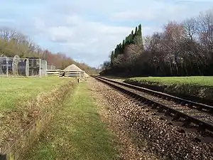 In 1992, the Society's extension reached New Coombe Bridge, where a simple run-around loop was provided on the alignment of the former up line through West Hoathly, located just north of the former No.2 platform. Since then, the Society - much like the 1960s railway removal contractors - have used the site to store materials for the extension, which were delivered there by road. This allowed the rebuilding of New Coombe Bridge, and opening of the extension northwards to Kingscote in early 1994. With the installation of a run-around loop at Kingscote railway station, the loop just north of West Hoathly was removed, and the line returned to its current single-track, non-stopping configuration.[2]