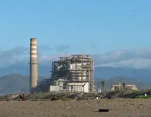 Some oil field and power generation facilities are in enclosures within the parks and open spaces. A row of wells near McGrath Lake drill into the offshore portion of the field; visitors to McGrath State Beach can walk past them along the beach. Reliant Energy's 560-megawatt gas-fired Mandalay Generating Station is north of and adjacent to Mandalay Beach Park. An oil-gas separator adjacent to the Mandalay plant processes gas from the offshore Santa Clara and Hueneme fields and sells the gas to Reliant for use at the power plant.[5] Mandalay Beach Park consists of 94 acres (38 ha) of land left in its natural state, without amenities, and contains habitat for the endangered snowy plover.[6]