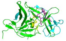 | NS2B | A cofactor for NS3 and together forms the NS2B-NS3 protease complex.[14] Contains transmembrane domains which bind the protease to intracellular membranes. |