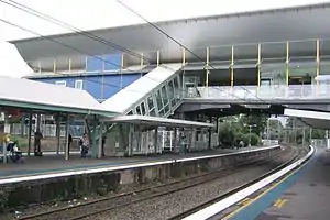 West Ryde station opened on 17 September 1886 as Ryde, being renamed West Ryde on 8 October 1945.[2] Immediately north of the station, a loop that runs to Epping commences. This opened on 24 October 1978.[3] On 27 November 1989, a southbound loop from Eastwood opened, this resulted in the existing southbound platform being converted to an island platform.[4][5][6]