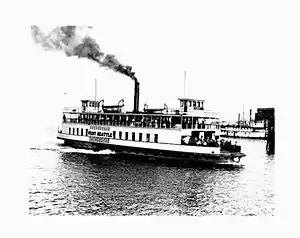 The West Seattle, which was built at Tacoma and entered regular service on June 27, 1907 on the Seattle – West Seattle route. City of Seattle was then shifted to run to the Luna amusement park then located at Duwamish Head. 1907 was the peak year for ferry transport on the Seattle-West Seattle run, with 103,000 passengers carried in July alone. After that, rising competition from the expanding network of street car lines over time proved too much for the West Seattle ferries, and City of Seattle was taken off the route in 1911.[1][2] West Seattle was kept on the run, and in June 1913, the money-losing ferry was sold to the Port of Seattle.[1]