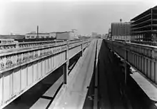 A temporary 45-foot (14 m) wide elevated street was proposed by the city between 29th Street and 37th Street to bypass the New York Central Railroad's 30th Street Yard, to provide relief before the permanent highway was finished.[31] It appears that this temporary viaduct was not built.