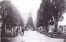 In about 1870 the two chapels were built, one for Church of England services and the other for Nonconformist services.[2] The Cemetery came under the control of the Joint Burial Committee in 1895 and Farnham Council on 27 July 1926. In 1947 an additional area of 16.2 acres was obtained of which 9.6 acres were turned over to the Cemetery for use as an additional area for burials. This new burial ground is beyond a vintage brick wall which bisects the two halves of the Cemetery. A report in 1947 records that common graves with a single burial at 6 ft could be reused after about 14 years. After passing into the hands of Waverley District Council it was transferred to Farnham Town Council in 2006.[3][4]