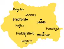![]() 2011 map of the West Yorkshire Built-up Area, showing subdivisions | |