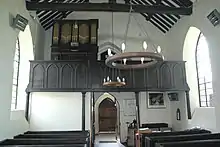 The term "west gallery" derives from the wooden galleries which in the 18th century were constructed at the west end of typical churches, and from which gallery the choir would perform. Churches were built in a standard layouts, with the nave running from east-west away from the altar, so that the west gallery or choir, would face the altar, the same way as, but above, the church-goers. Victorians disapproved of the Georgian galleries, and most were removed during restorations in the 19th century.[1]
