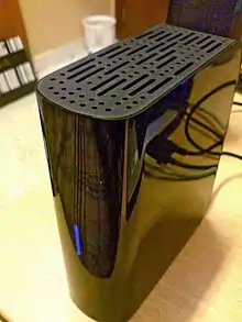 My Book Live Duo was released in January 2012.[20] It features two drives (totaling 6 or 4 TB, depending on the product version) that can be configured in a RAID array; in that case, all data is automatically mirrored and can be recovered if one of the drives fail (but effective drive space is halved). It sports a similar design to the previous My Book Live, but unlike that one this product has a top cover that allows for easily servicing and replacing the drives. It also has one Gigabit Ethernet and one USB connection.