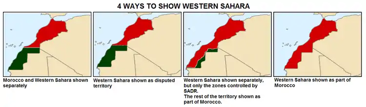 Efforts to gain support in the Arab World for the idea of a Greater Morocco did not receive much support despite efforts in the early 1960s to enlist the Arab League for its cause.[44] Morocco's expansionist ambitions caused strains, including a temporary rupture of relations with Tunisia. The Moroccans have been more successful regarding the Western Sahara. Unlike the Organization of African Unity which has strongly backed Western Sahara's right to self-determination, the Arab League has shown little interest in the area.[44]