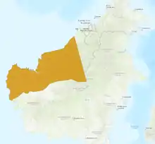 The western grey gibbon is endemic to the western portion of Borneo, where it is found in both Kalimantan and Sarawak. It is found north of the Kapuas River and ranges as far east as Spaoh.[3]