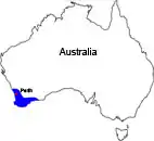 The Western pygmy perch is endemic to the south-western coastal drainages of Western Australia. Its range extends from the Waychinicup River east of Albany to the Arrowsmith River 300 kilometres (190 mi) north of Perth. It occurs in the majority of the river drainages within its range, as well as in lakes near the south coast.[1]