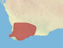 Once found across 70% of the Australian continent, the western quoll is now confined to south-western corner of Western Australia. This perhaps was due to European settlement in the late 1780s as their range dramatically declined after this event.[4] It currently inhabits wet and dry sclerophyll forests, including contiguous Jarrah Forest and mallee.[12] These areas consist of open forest, low open forest, woodland, and open shrub.[11] On occasion they are recorded in the WA Wheatbelt and Goldfields regions, and by the 1930s disappeared completely from Swan Coastal Plain and surrounds.[4]