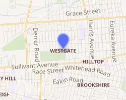 Westgate is a community within the Hilltop area of Columbus, Ohio. It was partially constructed on land that formerly housed the American Civil War Camp Chase and a Confederate prison. After the Civil War, the land was purchased by Joseph Binns and his associates with the intent to start a Quaker community. These plans failed to materialize and the land was developed as a "streetcar suburb" in the 1920s.[1] Located 4 miles (6.4 km) west of downtown, the neighborhood is home to Westgate Park and Recreation Center, Westgate Alternative Elementary School, St. Mary Magdalene Church and school, and Parkview United Methodist Church. 4,500 residents live within the Westgate boundaries, most in single family houses.[2]