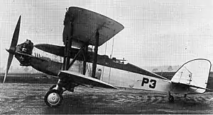 The PV-3 design was produced in 1930 as a private venture two-seat aircraft that could be used as either a carrier-based torpedo bomber intended to carry a new lightweight torpedo being developed by the Admiralty, or as an army-co-operation aircraft.[1] As such, it was a development of the Wapiti, with an all-metal structure and folding two-bay wings. It was powered by a 575 hp (429 kW) Bristol Jupiter XFA radial engine, having a defensive armament of one forward-firing Vickers machine gun and a Lewis gun on a Scarff ring on the observer's cockpit. It could carry either the planned 1,000 lb (455 kg) torpedo under the fuselage or an equivalent weight of bombs under the wings.[2]