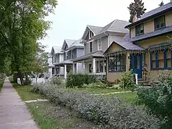 The large majority of the Westmount area is occupied by single family detached houses. This includes a large number of historic homes, often in the Craftsman or Four Square styles, in the Westmount Architectural Heritage Area (WAHA) and the Groat Estates area. The WAHA is bound by 107 Ave in the south, 127 St in the west, 124 St in the east, and 111 Ave in the north.[10] The Groat Estates are a peninsular shaped area in the southwest portion of Westmount, bound by 107 St in the north, 124 St in the east, the meandering Groat Road Ravine in the west and southwest and the North Saskatchewan River Valley in the south.[11]