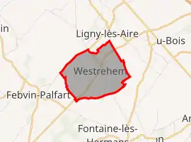 It is surrounded by the communes of Ligny-lès-Aire, Fontaine-lès-Hermans and Febvin-Palfart. Westrehem is located 16 km northwest of Bruay-la-Buissière, the largest nearby city.[3]