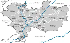 The Wetteraukreis is a Kreis (district) in the middle of Hesse, Germany. Neighbouring districts are Landkreis Gießen, Vogelsbergkreis, Main-Kinzig-Kreis, district-free Stadt Frankfurt, Hochtaunuskreis and Lahn-Dill-Kreis.