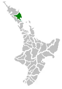Whangarei District is a territorial authority district in the Northland Region of New Zealand that is governed by the Whangarei District Council. The district is made up in area largely by rural land, and includes a fifth of the Northland Region. It extends southwards to the southern end of Bream Bay, northwards to Whangaruru and almost to the Bay of Islands, and westwards up the Mangakahia River valley past Pakotai and almost to Waipoua Forest. It includes the Hen and Chicken Islands and the Poor Knights Islands.