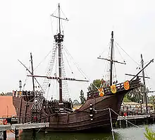 The Wharf of the Caravels (Spanish: Muelle de las Carabelas) is a museum in Palos de la Frontera, in the province of Huelva, autonomous community of Andalusia, Spain. Its most prominent exhibits are replicas of Christopher Columbus's boats for his first voyage to the Americas, the Niña, the Pinta, and the Santa María. These were built in 1992 for the Celebration of the Fifth Centenary of the Discovery of the Americas. The replica caravels were built between 1990 and 1992, put through shakedown voyages[1] and then, in 1992, sailed the route of Columbus's voyage.