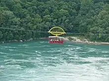 The Whirlpool Aero Car or Spanish Aero Car is a cable car located in Niagara Falls, Ontario that transports passengers over a section of the Niagara River referred to as the Niagara Whirlpool. The system was designed by Spanish engineer Leonardo Torres Quevedo and has been upgraded several times since 1916 (in 1961, 1967 and 1984).[1] The system uses one car that carries 35 standing passengers over a one-kilometre trip.[2]