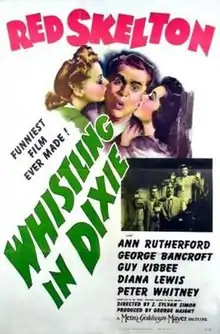 Whistling in Dixie is a 1942 American crime comedy film, the second of three starring Red Skelton as radio detective and amateur crime solver Wally Benton (also known as The Fox) and Ann Rutherford as his fiancée. The pair are called upon to solve a crime in the Southern United States. The film also re-introduces Rags Ragland, playing dual roles as twins, the mostly-reformed Chester, as well as his villainous brother from the first film. The film turns into a romantic comedy mystery, complete with death traps, corrupt politicians and lost gold, ending with a frenetic fight at the end between Wally Benton and both of Rags Ragland's characters.