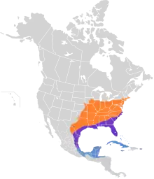 The resident southeastern coastal plain race, V. g. griseus is a slightly smaller and duller colored subspecies. It does not typically migrate out of its breeding range in the winter.