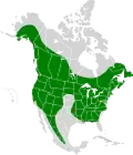 The disease was first reported in January 2007 in New York caves,[20] although it was retrospectively detected in a photograph taken in early 2006. It spread to other New York caves and into Vermont, Massachusetts, and Connecticut by 2008.[46][47] In early 2009, it was confirmed in New Hampshire,[48] New Jersey, Pennsylvania,[49] Virginia,[50] West Virginia[46] and in March 2010, in Ontario Canada, Maryland,[51] Middle Tennessee, Missouri,[52] and Quebec, Canada.[53][54] In 2011, the syndrome was confirmed in Ohio,[55] Indiana,[56] Kentucky,[57] North Carolina,[50] Maine,[58] New Brunswick and Nova Scotia.[59] In the winter of 2011–2012, Alabama,[27] Delaware[60] and Arkansas[61] confirmed the disease in bats and new cases showed up in northeastern Ohio,[62] and Acadia National Park in Maine.[63] Confirmed cases appeared in 2013 in Georgia,[64] South Carolina,[65] Illinois,[66] and the Canadian province of Prince Edward Island.[67] In March, 2014, WDNR and USGS staff conducting routine surveillance detected white-nose syndrome in a single mine in Grant County Wisconsin and the USGS National Wildlife Health Center later confirmed the disease.[68] In April, 2014, the Michigan Department of Natural Resources announced that the disease had been found in Alpena County, Mackinac County, and Dickinson County.[69] In May, 2014, after retesting, the Myotis velifer specimen from Oklahoma and other swabs and samples from the area tested negative, and Oklahoma and Myotis velifer were removed from the list of WNS suspects.[70]