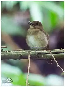 The white-throated jungle flycatcher (Vauriella albigularis), also known as the Negros jungle flycatcher is a species of bird in the Old World flycatcher family Muscicapidae. It is endemic to the Philippines (Negros and Panay islands) and formerly on Guimaras before its extirpation there. The natural habitats of the white-throated jungle flycatcher are tropical moist lowland forests and tropical moist montane forests up to 1,350 masl. [2]It is threatened by habitat loss.