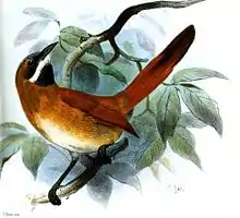 The white-whiskered spinetail has a grayish-brown crown with sides of head black as well as a "whisker" stripe on both sides of face; as well as a mostly-brown head. Cinnamon rufous sides and breast and a white underbelly.