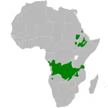 It is found in central Africa, from Angola in the west to Ethiopia in the east. There are two races:[3]