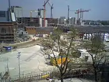As part of the construction of the Westfield London shopping centre, the original depot along with the disused Wood Lane platforms and station building were demolished. A new depot was built in a slightly different location, located directly beneath the shopping centre - funded by Westfield. The new depot opened in January 2007, with 16 stabling sidings, one more than previous.[5][9] The White City depot is the closest depot to Central London of any tube line.[10] Since the 1990s, all trains stabled at the depot are 1992 Stock.