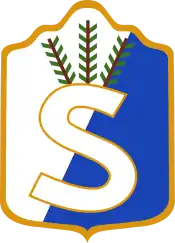 The first ad hoc symbols were a white armband and a small, three-branched shoot from a spruce branch, placed into the hat. The basic insignia was an embroidered badge with a white "S" topped by three single shoots of spruce branches. The badge and the "S" were embroidered with a gold-colored border. The symbol worn by General C.G.E. Mannerheim had a blue field, but in the provinces, the field was divided (party per sinister), with two or three colors representing each province. The white armband also bore the name of the municipality. Each chapter had its own flag, but generally it was a symmetric variant of the modern State Flag of Finland where the cross was extended with small swastika arms, the "S" symbol in the canton and local symbols instead of the coat of arms.[11]