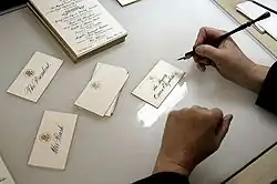 Place cards being calligraphed before a state dinner.