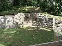 Next to the manor house there are remains seemingly of a gothic window below ground level within a low building, but the evidence is not certain that this relates to the Whitechapel.[1] Some sources indeed identify this as a bee bole.