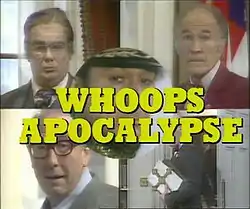 Whoops Apocalypse is a six-part 1982 television sitcom by Andrew Marshall and David Renwick, made by London Weekend Television for ITV. Marshall and Renwick later reworked the concept as a 1986 film of the same name from ITC Entertainment, with almost completely different characters and plot, although one or two of the original actors returned in different roles.