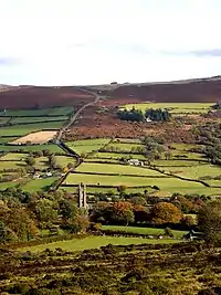 The deserted medieval village of Hutholes and the abandoned farmstead Dinna Clerks (also spelt Dinah Clark's) are nearby.[4] The Rippon Tor Rifle Range lies within five miles of the village.