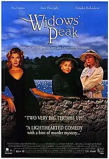 Widows' Peak is a 1994 British-Irish mystery film directed by John Irvin and starring Mia Farrow, Joan Plowright, Natasha Richardson, Adrian Dunbar and Jim Broadbent.[1] The film is based on an original screenplay by Hugh Leonard and Tim Hayes.