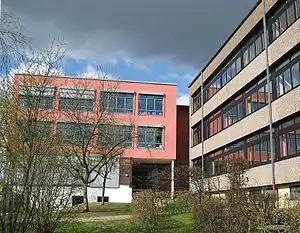 The gymnasium's main building is largely composed of the Altbau, built in the 1970s. Then there is the Neubau, which is much smaller, at the end of the building. It was built in the 2000s. The Unterstufe (Grades 5-7) are studying in the Neubau.