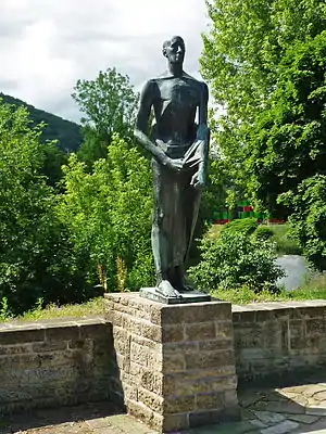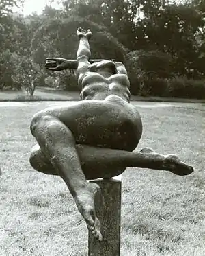 He applied to his employers to back his application to sponsor his application to study at the academy, but was turned down for reasons that involved the risk of "Verbürgerlichung" (loosely: "bourgeoisization"). He therefore made the application anyway, on his own responsibility, and was accepted. He was a student at the Dresden Academy of Fine Arts between 1953 and 1958.[2] He began his study of sculpting in 1953, taught by Walter Arnold and Arnold's assistant Gerd Jaeger . Another of his teachers was Hans Steger. The focus of the training at Dresden was on neoclassical form, backed up by compulsory courses in drawing, on use of plaster casts and on nature. The study of anatomy and history of art were also included and required.[4]