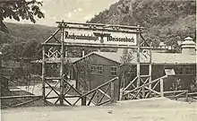 The Wiener Außenring Autobahn was already planned in the 1930s. The construction of the valley crossings had already begun in 1940. Thus, for example, in Weissenbach or Sittendorf barracks were set up, initially housing regular construction workers, but later serving as accommodation for prisoners of war. Thus, in the Sittendorfer camp, originally relatively well-paid workers from Vienna and the Burgenland, but also from Germany, were housed. In September 1941 Ukrainians came to this camp and were trained as soldiers. Later, prisoners from France and later Serbia came to the camp. The camp housed up to 250 inmates. In 1942, typhoid fever broke out and claimed numerous victims. After the barracks briefly served as a warehouse for aircraft parts from the Seegrotte, their usage was stopped in the war turmoil like all other construction sites.[1] Another camp was located on the Fischerwiese in Klausen-Leopoldsdorf, where Roma were also imprisoned, who had to work as forced laborers on the highway.[2] In 1938, a barrack camp was built in Sittendorf, which originally served for the workers and later French prisoners of war, as well as for Serbian forced laborers. Today, a plaque commemorates the place of remembrance in the barracks camp and at the Sittendorf cemetery.[3]