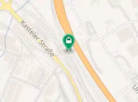 The northwestern part of the station connects to the East Rhine Railway, which has very heavy freight train traffic. These trains run through Wiesbaden Ost on the western side of the platforms and connect to the southern tracks of the Taunus Railway towards Mainz-Kastel. The section between Wiesbaden Ost and Kostheim junction is characterized by chronic congestion, since in addition to Rhine-Main S-Bahn lines S 1 and S 9, Rhein-Main-Verkehrsverbund line 10 runs to Frankfurt Central Station. To eliminate this bottleneck, a single-track connecting curve from the former Igelstein junction on the Mainz freight bypass to the East Rhine Railway has been under construction since early 2011 under the “seaport hinterland transport emergency program” (Sofortprogramms Seehafenhinterlandverkehr).[7] According to the tender, this involves a 1,200 m long single-track connection, including two ground frames.[8] The curve allows all freight trains through the district of Mainz-Kastel to run via the bypass, avoiding conflict with regional passenger services. Although, for reasons of capacity, not all freight transport will be able to use both the connecting curve and the freight bypass, a marked decrease in the current potential for conflict between freight and passenger traffic is expected. Only S-Bahn S 9 line will in future run between Kostheim junction and Mainz-Bischofsheim station, sharing the line over Kostheim bridge with freight trains.