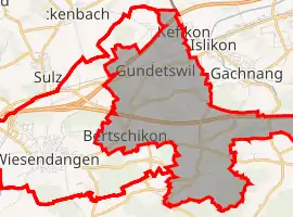 Wiesendangen is a municipality in the district of Winterthur in the canton of Zürich in Switzerland. On 1 January 2014 the former municipality of Bertschikon merged into the municipality of Wiesendangen. At the same time the Community Identification Number changed from 0229 to 0298.[3]