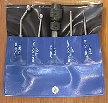 A wiggler, also known as a wobbler, edge-finder, center-finder or laser-centering-device, is a tool used with a machine like a mill, to accurately align the machine head with the work prior to machining.