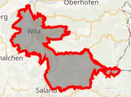 Wila has an area of 9.2 km2 (3.6 sq mi). Of this area, 38.4% is used for agricultural purposes, while 51.5% is forested. Of the rest of the land, 9.1% is settled (buildings or roads) and the remainder (1.1%) is non-productive (rivers, glaciers or mountains).[3] In 1996 housing and buildings made up 6.4% of the total area, while transportation infrastructure made up the rest (2.9%).[4] Of the total unproductive area, water (streams and lakes) made up 0.9% of the area. As of 2007 8% of the total municipal area was undergoing some type of construction.[4]