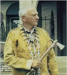 Wilbur Ternyik's mother was a descendant of Clatsop Indian leader Chief Coboway, who met the Lewis and Clark expedition in 1804 when they arrived at the Pacific Coast near Astoria.[2] His father was a Hungarian immigrant. His father moved back to the east coast prior to Ternyik's birth, and his mother suffered from alcoholism; he was mostly raised by his grandparents.[6] Ternyik was born in Astoria[8] and grew up in Warrenton, Oregon, graduating from Warrenton High School.[9] He often wore a tan buckskin jacket and used what he called his "tomahawk peace pipe" as a gavel in meetings.[8][10][11]