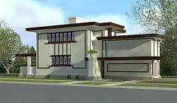 ![]() Digital reconstruction of the Wynant House viewed from the northwest; main entrance is at center | |