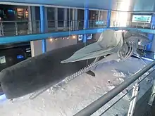 - Fin whales – Historically residential in Yellow and Bohai Sea[176][177] to East and South China Seas such as off Paracel Islands, and at least two other local groups, Sea of Japan residents and the group once migrated along the Pacific side of Japanese archipelago, once migrated to Chinese waters[178] The East China Sea group is considered to be either functionally extinct or critically endangered due to being one of main targets by Japanese whaling in 20th century,[179] and today there have been occasional strandings or findings of deceased individuals along sporadic areas from Yellow and Bohai Seas to other parts including southern shores like at Kam District in Wenchang,[180] Shanghai (although the whale was speculated to have died in offshore waters),[181][182] and Ningbo.[183] The last of confirmed sightings on Taiwan is unknown although some media and tourism operators claim that migrations still occur,[141][184] and whales might still migrate in pelagic waters. The only modern record among Ryukyu Islands was of a rotten carcass beached on Ishigaki Island in 2005.[185] The last of known records on Korean Peninsula was in 1973,[174] but there have been recent by-catches along the coasts. Regarding Yellow Sea, a juvenile was accidentally killed along Boryeong in 2014.[186] Some whales still live in Sea of Japan[187] and pass through Tsushima Strait.[173] There had been congregation areas adjacent to Korean Peninsula such as in East Korea Bay and Ulleungdo,[188] although recent occurrences into these locations are of unclear due to locational disorders.