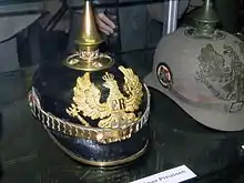 The distinctive spiked helmet, the so-called Pickelhaube had existed previously and not only in the German Empire, but it symbolised Wilhelmine period since the Imperial Army and German militarism in general. (In fact, various sign languages still have the extended forefinger placed in front of the forehead, indicating the spiked helmet, as the sign for "German".) "Wilhelmism" is equally applied to the distinctive styles prevailing in the visual arts and architecture of the period, such as the ornate Germania postage stamps,[1] numerous government buildings and the Wilhelmine Ring housing areas of Berlin and many other German cities. The term is also used to describe, among other things, an essentially-Neo-Baroque and extraordinarily-prestige-oriented style of architecture, which is calculated to give expression to the Germany's claim to an imperial power. The style was particularly exemplified by the grandiose Siegesallee, a boulevard of sculptures that was lampooned by Berliners as Puppenallee ("mall of dolls"), and it was given official status by Wilhelm's so-called Rinnsteinrede ("gutter speech") on what he considered to be modernist degenerate art at the inauguration of the extravagant boulevard on December 18, 1901.